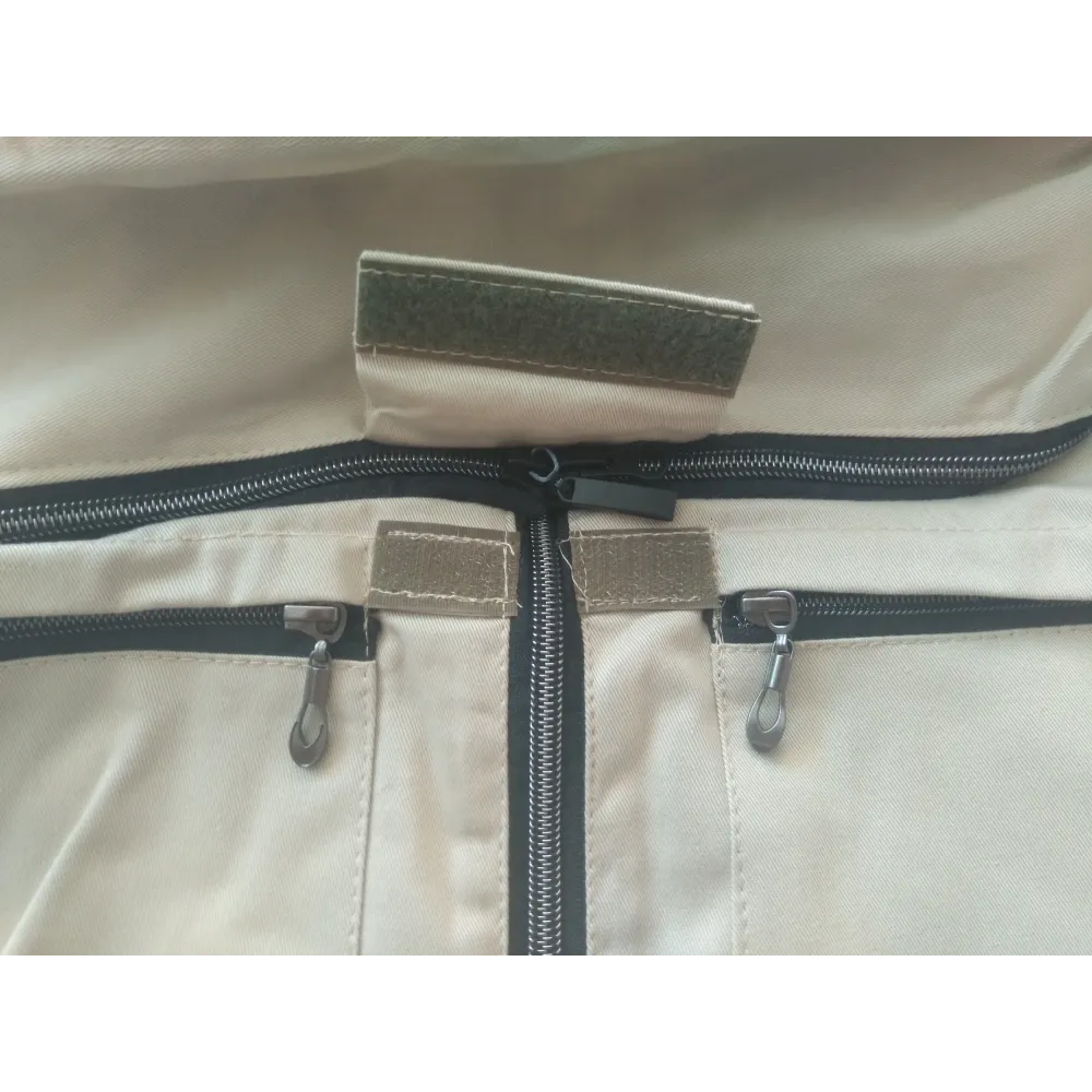 Kombinezono viršutinėje ir apatinėje dalyje yra po dvi kišenes.  Viršutinės kišenės užsegamos užtrauktukais, apatinės dalies kišenės segamos tvirtais lipdukais.