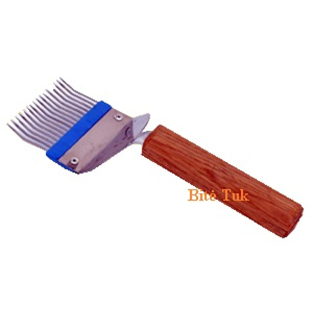 Atakiavimo šakutės adatėlės pagamintos iš nerūdijančio plieno, lenktos. Rankenėlė medinė.