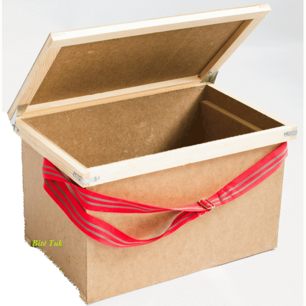 Dėžė skirta korių pernešimui, pagaminta iš presuoto medžio plaušo plokštės ir pušies medienos, telpa 8 Dadant rėmeliai. Yra patogus reguliuojamo ilgio diržas nešti.