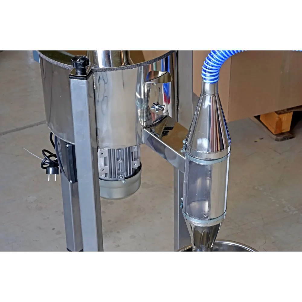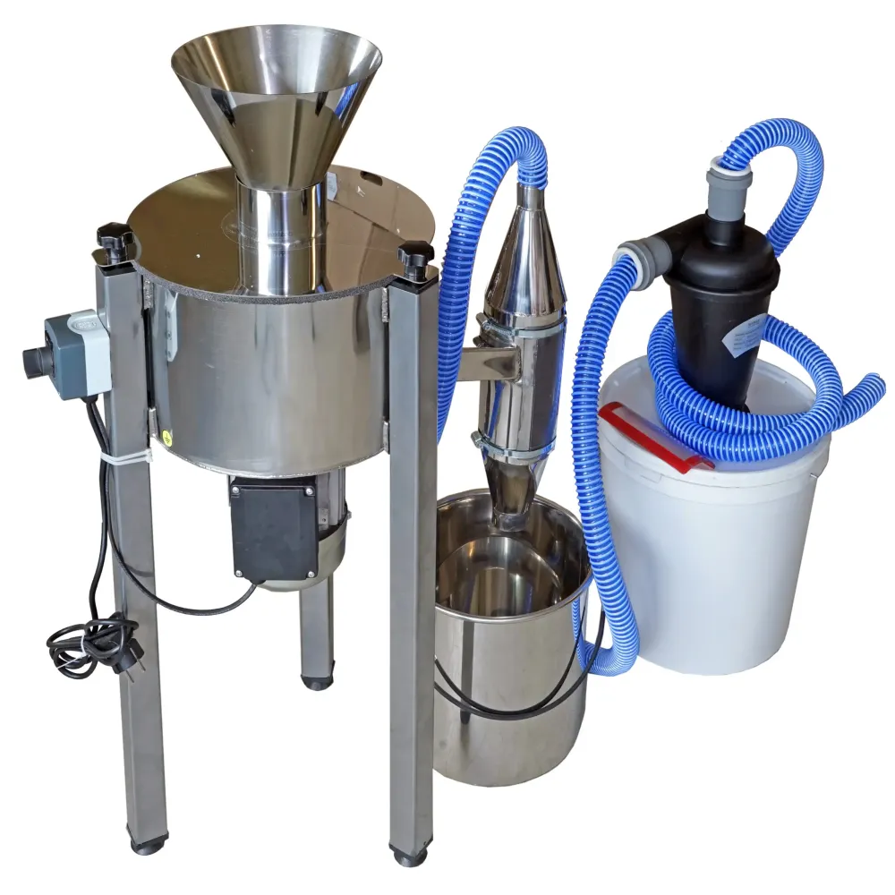 Ten vaško ir bičių duonelės masė susmulkinama ir išleidžiama pro įrenginio langelį bei lataku į įrenginio difuzorių. Sunkesnė bičių duona iš karto patenka į bičių duonelės surinkimo konteinerį, o lengvesnės atliekos oro srautu įsiurbiamos į vamzdyną, vedantį į specialų konteiner. Šis įrenginys veikia naudodamas dulkių siurblio sukurtą neigiamą atmosferos slėgį, kuris tiekiamas į cikloną per dulkių siurblio vamzdyną. (Įrenginys parduodamas be dulkių siurblio) .