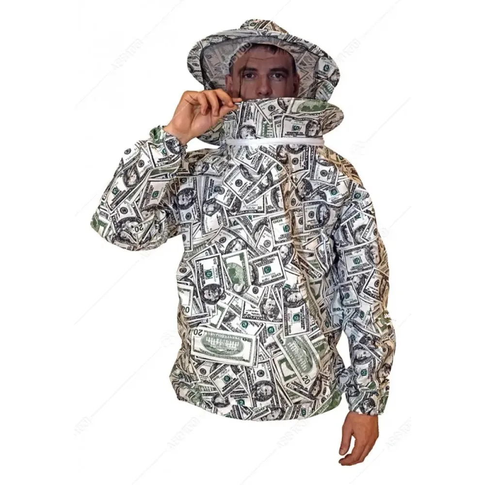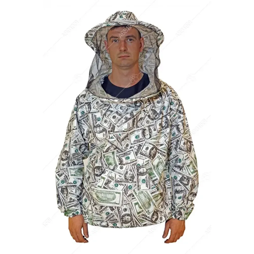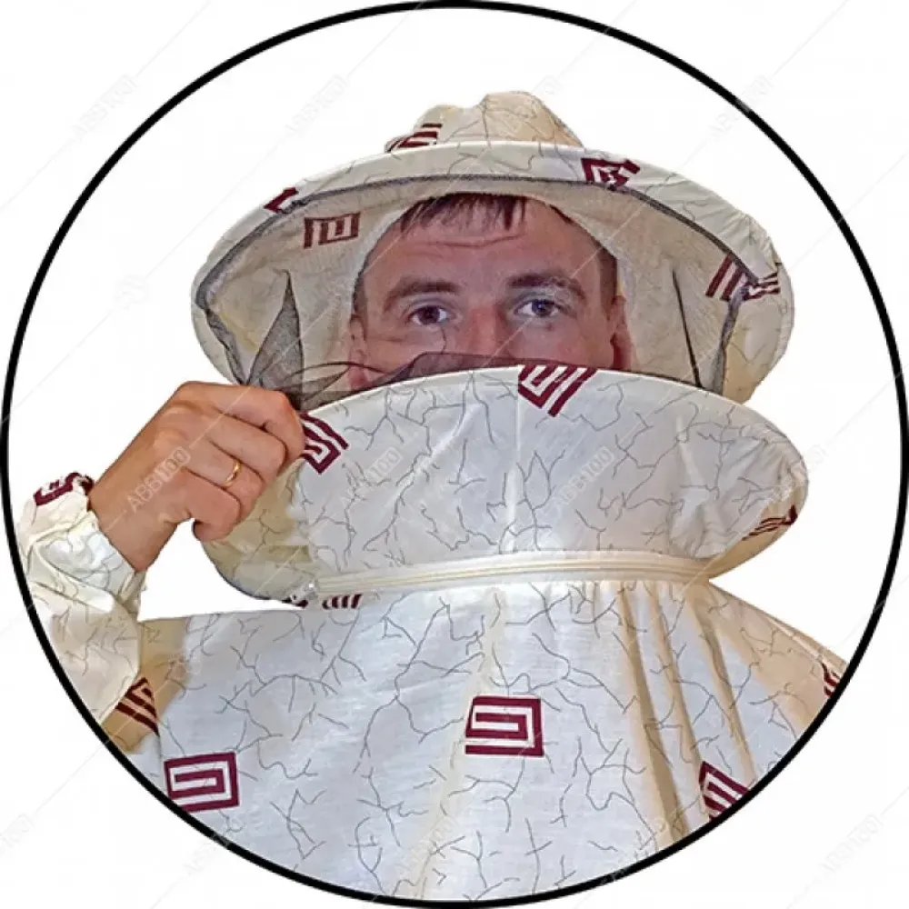 Lengva bitininko striukė, pasiūta iš plonos įvairių spalvų medvilnės.  Kepurė prisegama užtrauktukais. Rankovių galai, striukės apačia sutvirtinti guma.