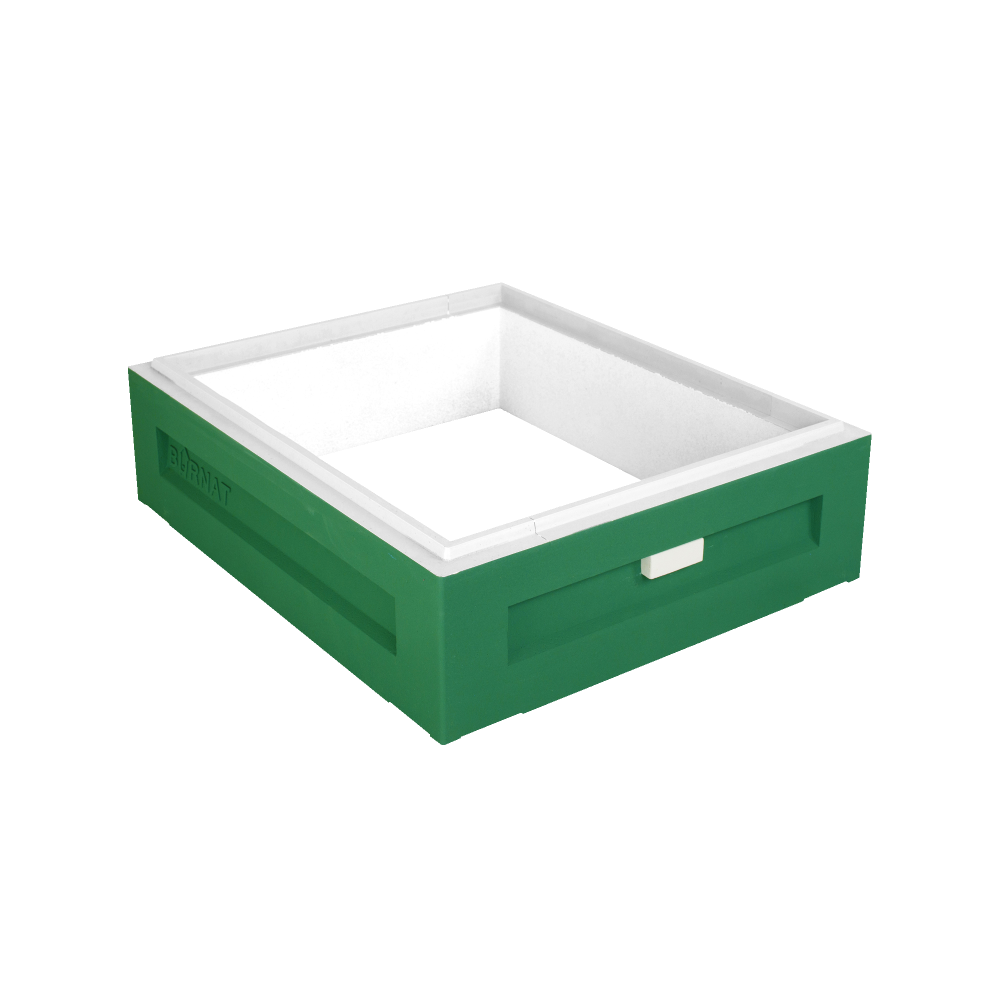 Pagamintas iš aukštos kokybės polistirolo, apjungia lengvumą, ilgaamžiškumą ir atsparumą oro sąlygoms. Medžiaga užtikrina aukščiausios klasės šilumos izoliaciją, o dėl itin mažo svorio transportavimo patogumą.