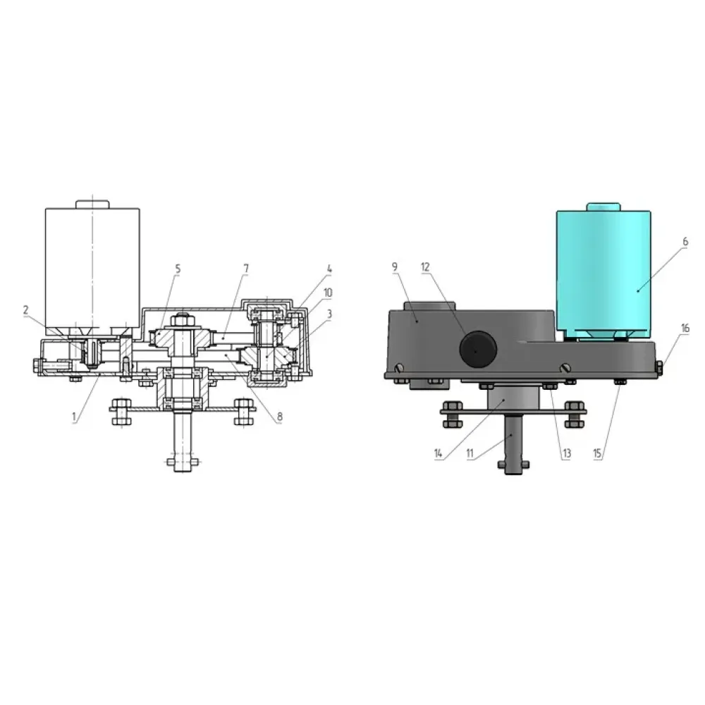 Komplektą sudaro : reduktorius su diržine pavara ir  varikliu,  valdymo ir maitinimo blokas. Valdymo blokas turi rankinio reguliavimo  funkcijas: greičio kontrolė, paleidimo laikas, reversas,  lėtas paleidimas . .