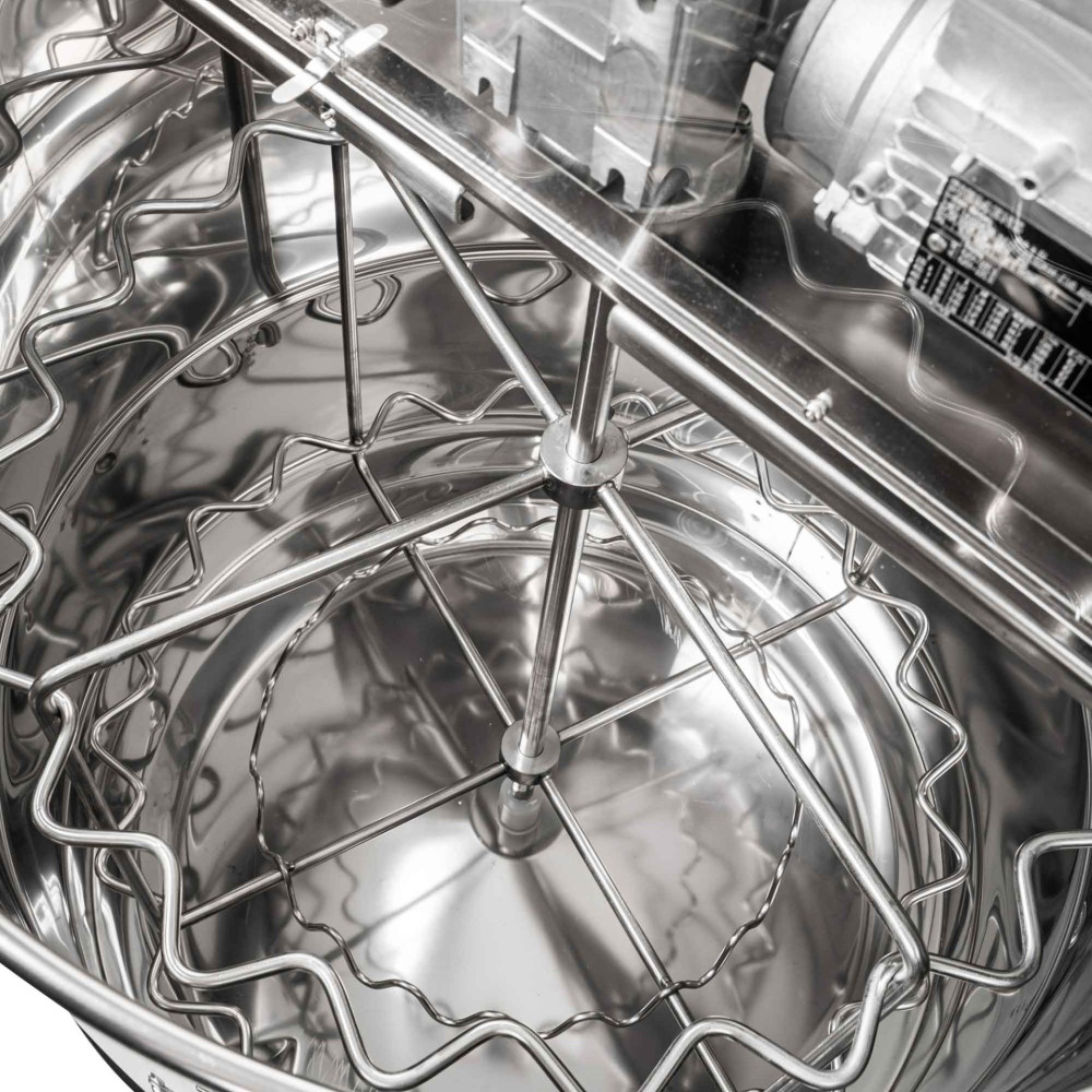 Vokiškas radialinis medsukis su valdikliu sujungia novatoriškas technologijas su tvirta konstrukcija ir yra puikus sprendimas švariam ir efektyviam medaus derliui. Dėl gerai apgalvoto dizaino ir aukštos kokybės medžiagų jis lengvai valdomas ir ilgai naudojamas.